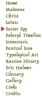 Home | Madonna | Saints | Christ | Easter Egg | Fabergé Timeline | Russian History | Eric Hulmer | Iconostasis | Festival Icon | Typological Art | Gallery | Glossary | Links | Credits