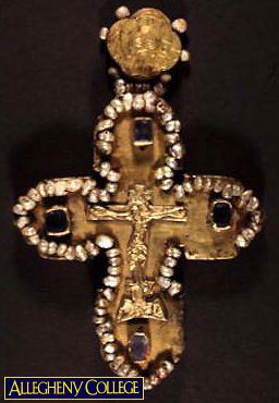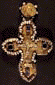 Length: 5 9/16" Brass set with emeralds, other "jewels" and pearls